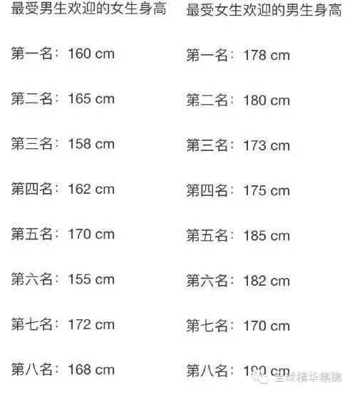 最受欢迎的异性身高对照表,看看你排第几名?我排第三。。。