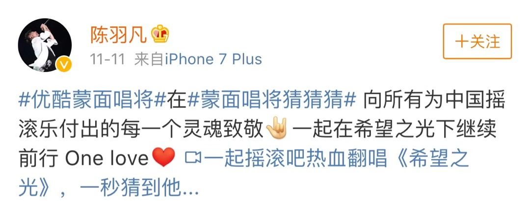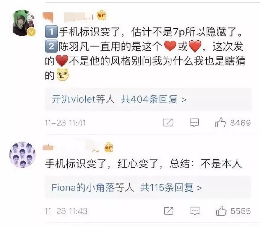 这条微博发出来本意是辟谣,但是眼尖的粉丝们一眼就看出端倪:陈羽凡的微博小尾巴一般都是来自iPhone 7Plus客户端。