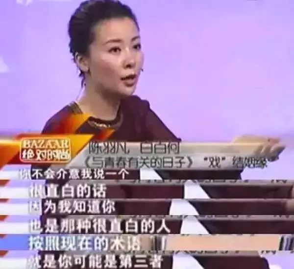 当时主持人就直说,白百何您这用术语就叫“第三者插足”