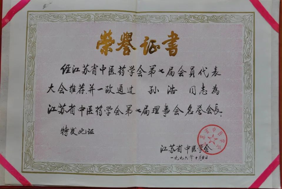 在仪征,孙浩的名字几乎家喻户晓,即便是在扬州,乃至江淮土地,也名声远播。在70余年的医教研工作中,始终忠诚于党,热爱中医药事业。他数十年如一日,勤奋工作在临床、教学、科研和管理第一线,以身作则、身体力行,团结带领医务人员,艰苦创业,为仪征市中医院建设发展做了大量卓有成效的工作;他医德高尚,医术精湛,关爱病人,全心全意为病人服务,深受广大群众信任和爱戴;他廉洁奉公、生活俭朴、宽以待人、尊重领导、关心同志、培养学生,是我们学习的榜样和楷模。