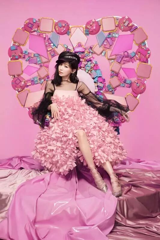 她身穿蓬蓬裙拿着桃心魔法棒,
