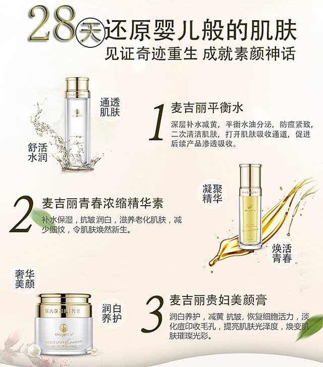 不仅如此,Mageline麦吉丽还是中国新声音第二季唯一指定护肤品牌,其倡导“尽享素颜之美”崇尚女性优雅的皮肤护理观念,凭借优质的产品,高端的产品路线,风靡社交圈,受到广大爱美女性的青睐。