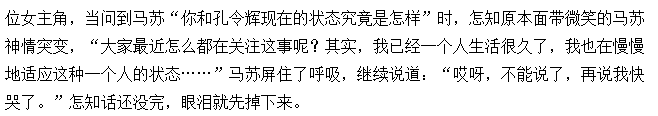 但一切都架不住马苏自爆与孔令辉分手并且泪洒当场的新闻来得劲爆。比这更劲爆的是前一天才说“十年感情如一日”。