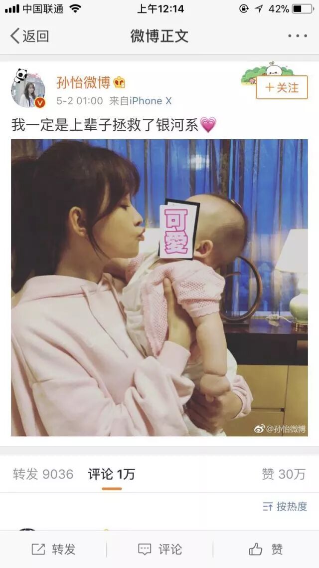 孙怡在结婚生娃后更是变身晒娃狂魔!经常在微博晒女儿各种照片,记录下这个小可爱的成长的点点滴滴!真是满满的都是爱。