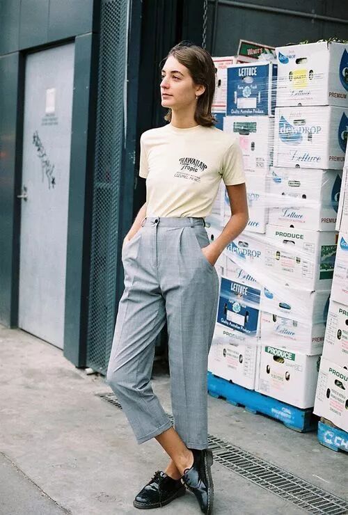 打造夏季OL风最重要的一点就是“less is more”,简单的T恤加西装裤就可以轻松打造的正式又不刻板的风格。