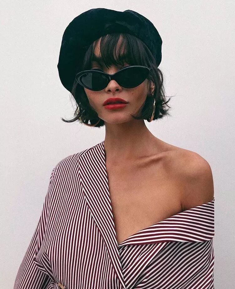 Shiona Turini手拿的却是黑白条纹的sam手袋,轻松打造了她极具个性的造型。