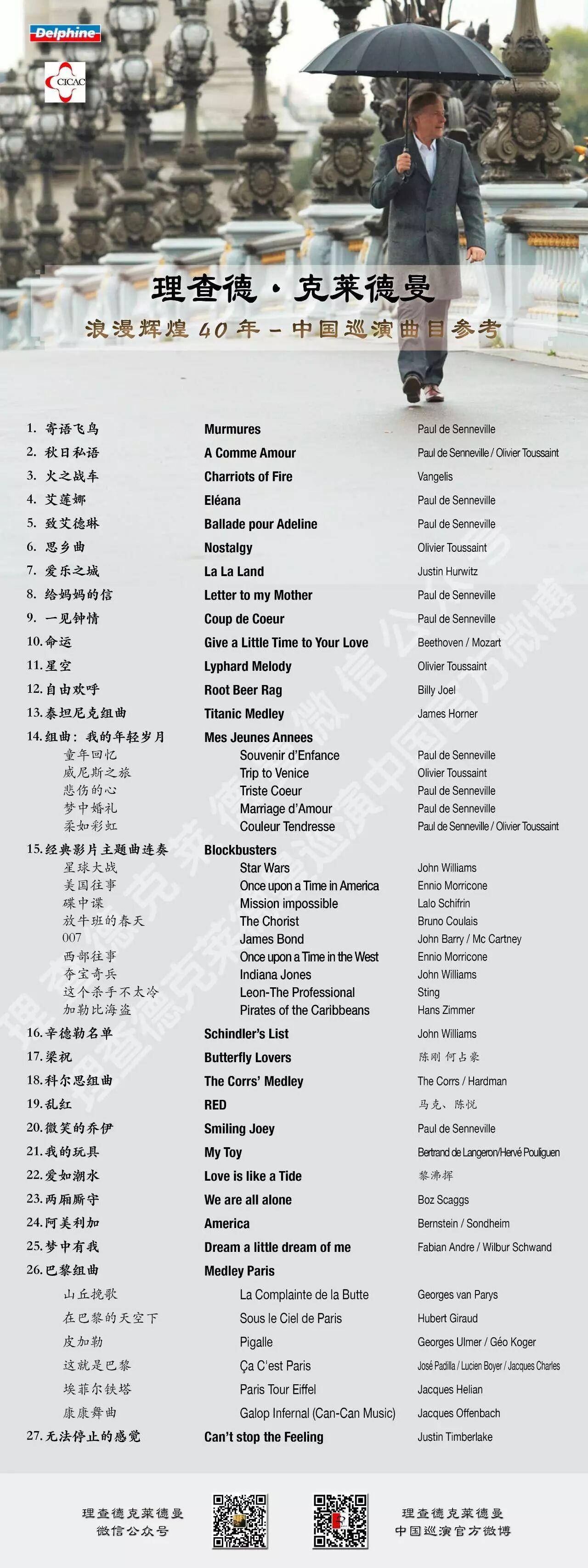 浪漫辉煌40年-理查德·克莱德曼2017-2018中国冬季巡演日程更新啦! 理查德克莱德曼 欧美男星 2017-10-28 05:12:20 354 创作不易,用心坚持,欢迎请BaGua喝几杯爱心咖啡!打赏并支持本文 打赏并删除本文 二月新增泉州、石家庄场次,北京又加一场!最新日程:曲目参考:购票请至大麦网、永乐票务等网站。 创作不易,用心坚持,欢迎请BaGua喝几杯爱心咖啡!打赏并支持本文 打赏并删除本文 感谢您的支持鼓励,我会继续努力的!文章地址:用户邮箱:打赏金额:USDT 请输入数字点击”去打赏“,即可进行打赏支持本文章哦 理查德克莱德曼 About the Author 理查德克莱德曼 功能介绍:理查德·克莱德曼公众号 "On m'aime comme je suis" - Richard Clayderman Related Posts 浪漫辉煌40年-理查德·克莱德曼2017-2018中国冬季巡演日程更新啦! 2017-10-28 05:12:20 发表评论