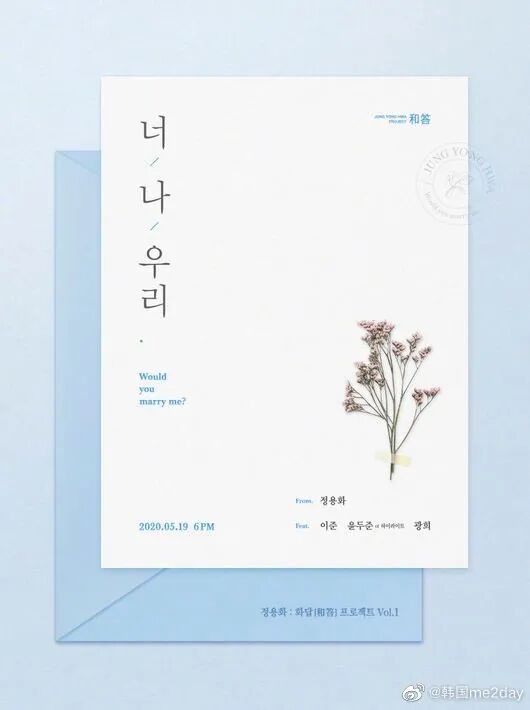 11日,据多家媒体报道,郑容和将于19日公开新曲《Would you marry me?》(Feat. 李准-黄光熙-尹斗俊of Highlight),此次新曲是一首适合温暖春天的Wedding Song,通过愉快地渗透在耳边的旋律为克服困难时期的情侣们加油。 EXO伯贤确定于25日SOLO回归,倒计时开始