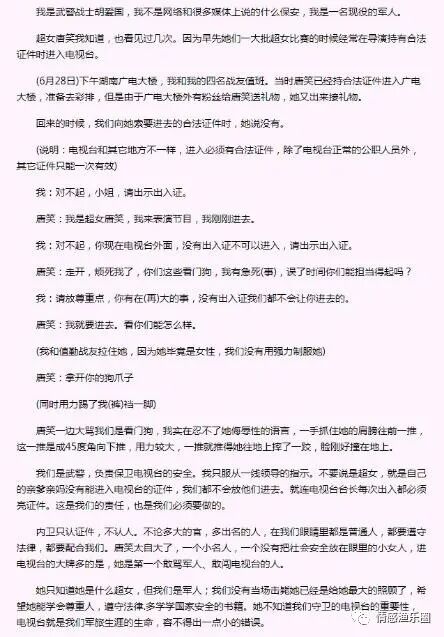 值班的武警只是在尽自己的职责,而唐笑却仗着自己是“明星”的架子,对武警出言不逊,甚至出手伤人。