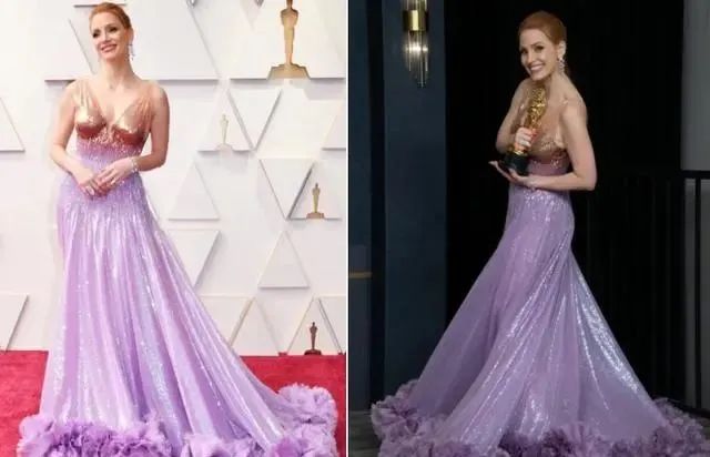 “劳模姐”JessicaChastain在这一次的奥斯卡颁奖典礼上凭借《塔米·菲的眼睛》一举获得“最佳女主角”奖项,当天的她意气风发,造型也十分惹人注目。