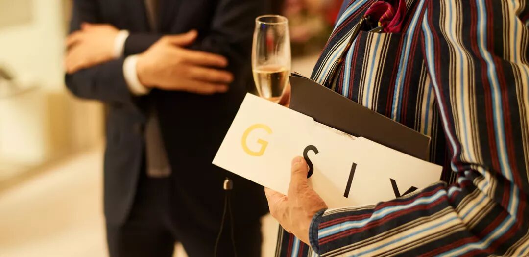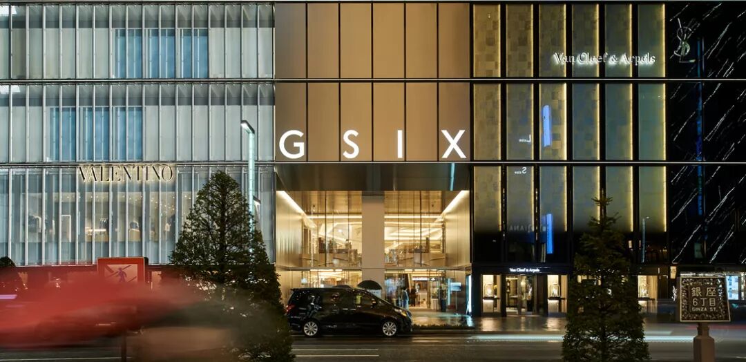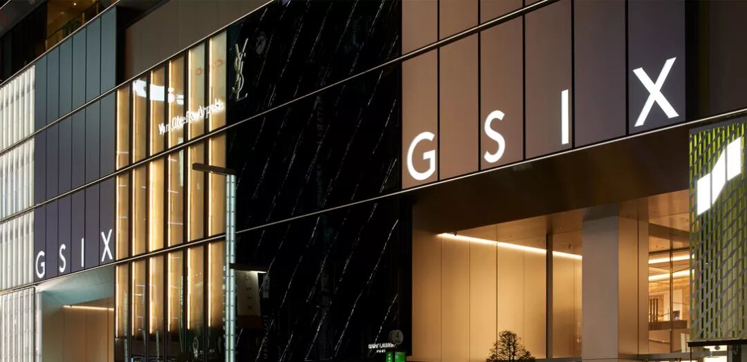 サインを建築の中に埋め込んでいます。Gだけが金色で、SIXが黒ですが、夜になると建物の内部から