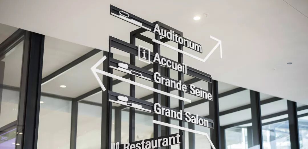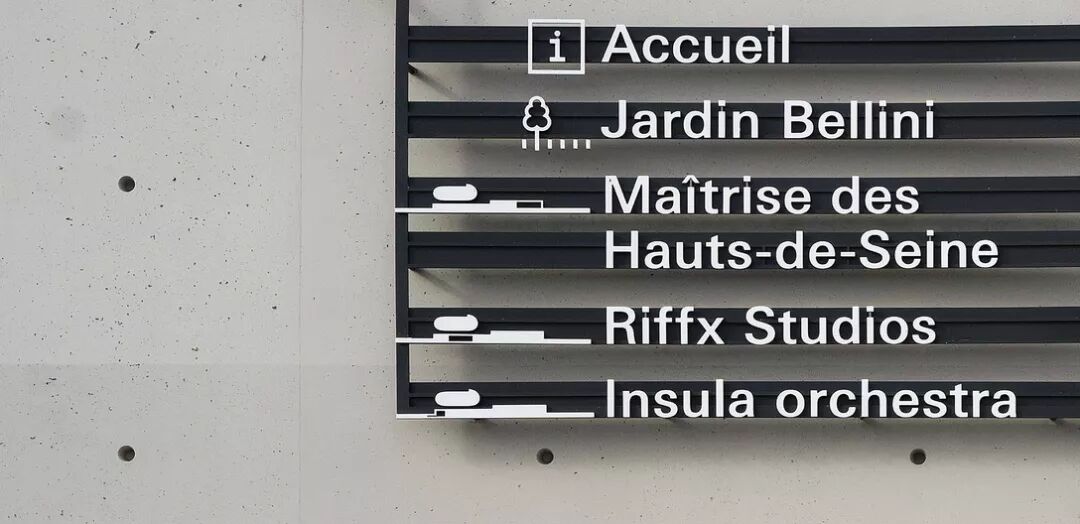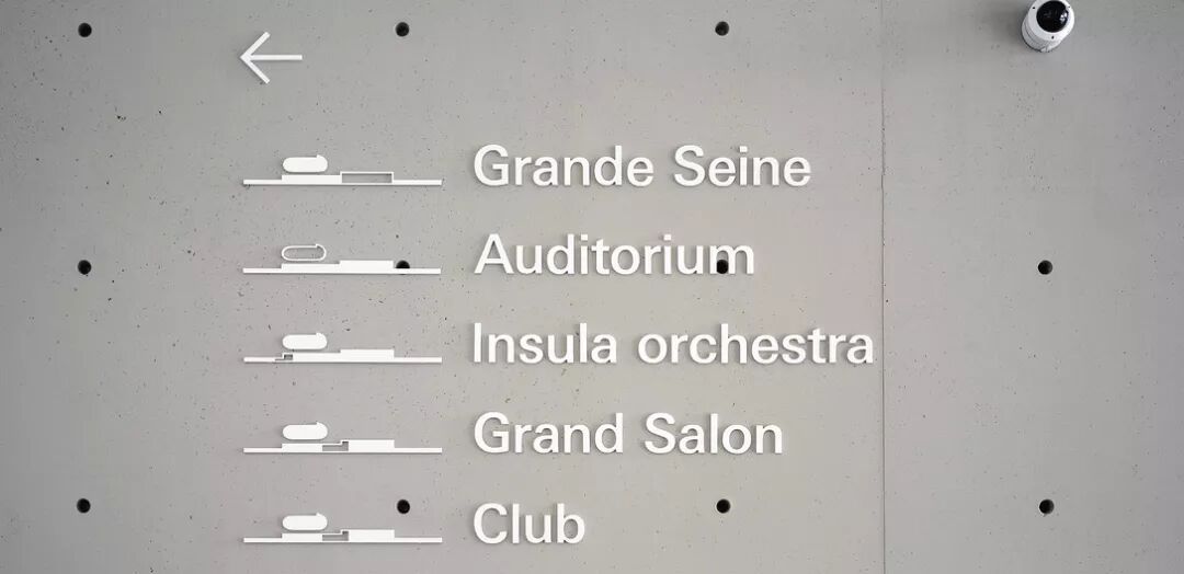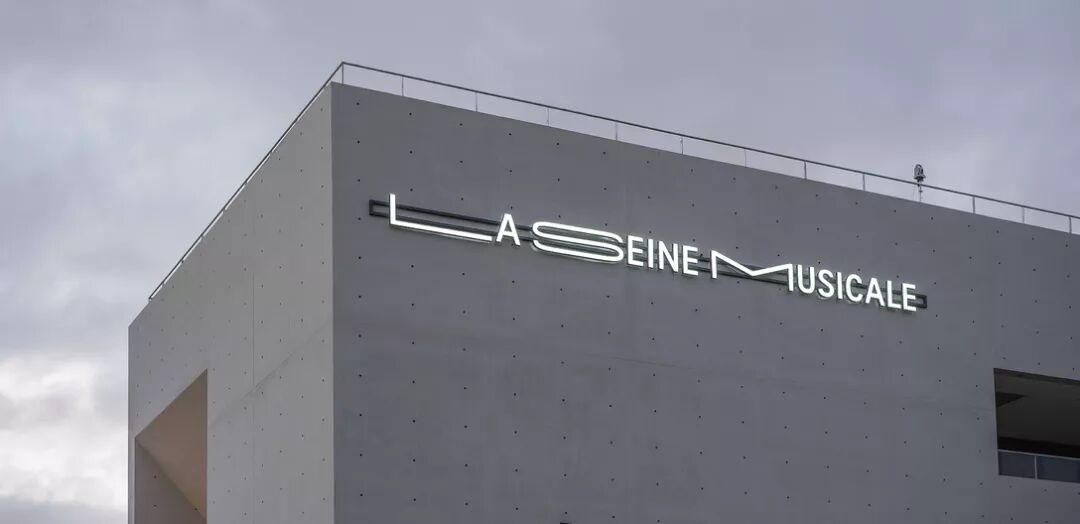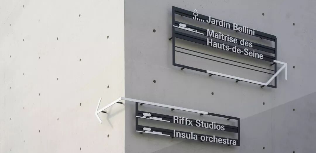 坂 茂氏が設計した、パリ郊外のセガン島にある音楽複合施設のVIとサイン計画。