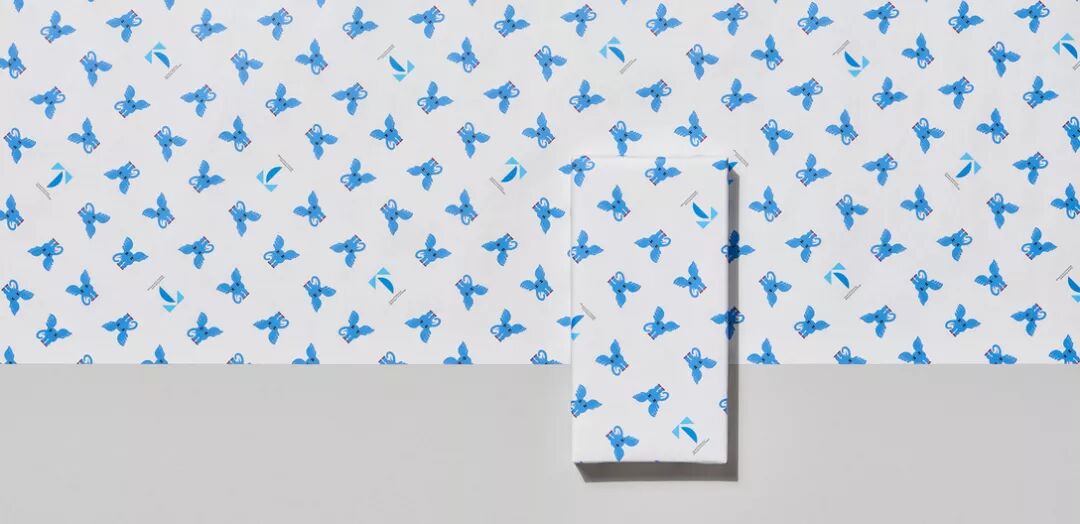 グラフィックツールではロゴのビビットな青色と幾何学的な形状を活かして