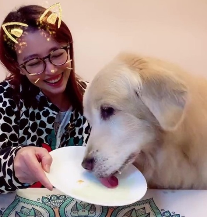 尽管只是狗狗生日,但周海媚还是特别订造了可供狗狗食用的蛋糕。只见她的爱犬不到一会儿就把生日蛋糕吃干净,连碟子也舔得一干二净,胃口超级好。