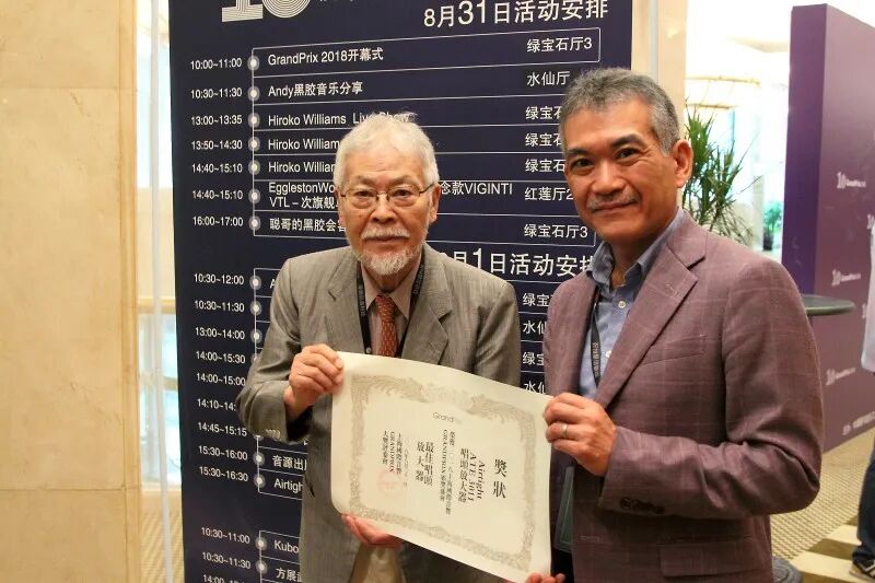 三浦 笃先生与儿子三浦 裕先生在2018上海格兰披治展上的领奖留影 |