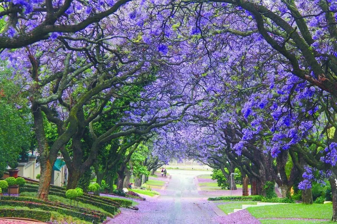 要问5月哪一种花最浪漫?蓝花楹当之无愧!成片的蓝紫色,为炎热的夏天送来一抹清凉,紫色的花瓣雨随风飘落,更是蜜汁唯美,浪漫到cry!