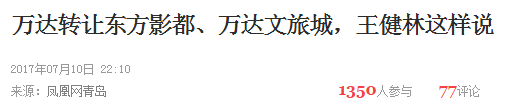 后来,万达卖了很多文化项目,其中最大的项目是《环2》的拍摄地,青岛东方影都。