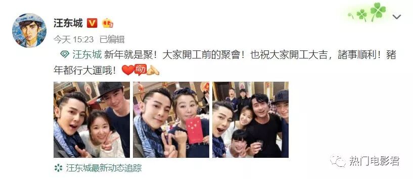 相信2月11日这一天对很多人来说都不算友好吧,毕竟正月初七是很多人开工的日子,相信大家在经历春节长假后,都为自己补足了能量,干劲十足迎接新一年了。不仅我们普通人如此,对很多明星来说,正月初七同样是上班工作的日子,如汪东城就在这一天发表动态,表示这是一次开工前的聚会,祝愿大家开工大吉,万事顺利。照片中是汪东城一众好友,其中还包括林心如霍建华夫妻。