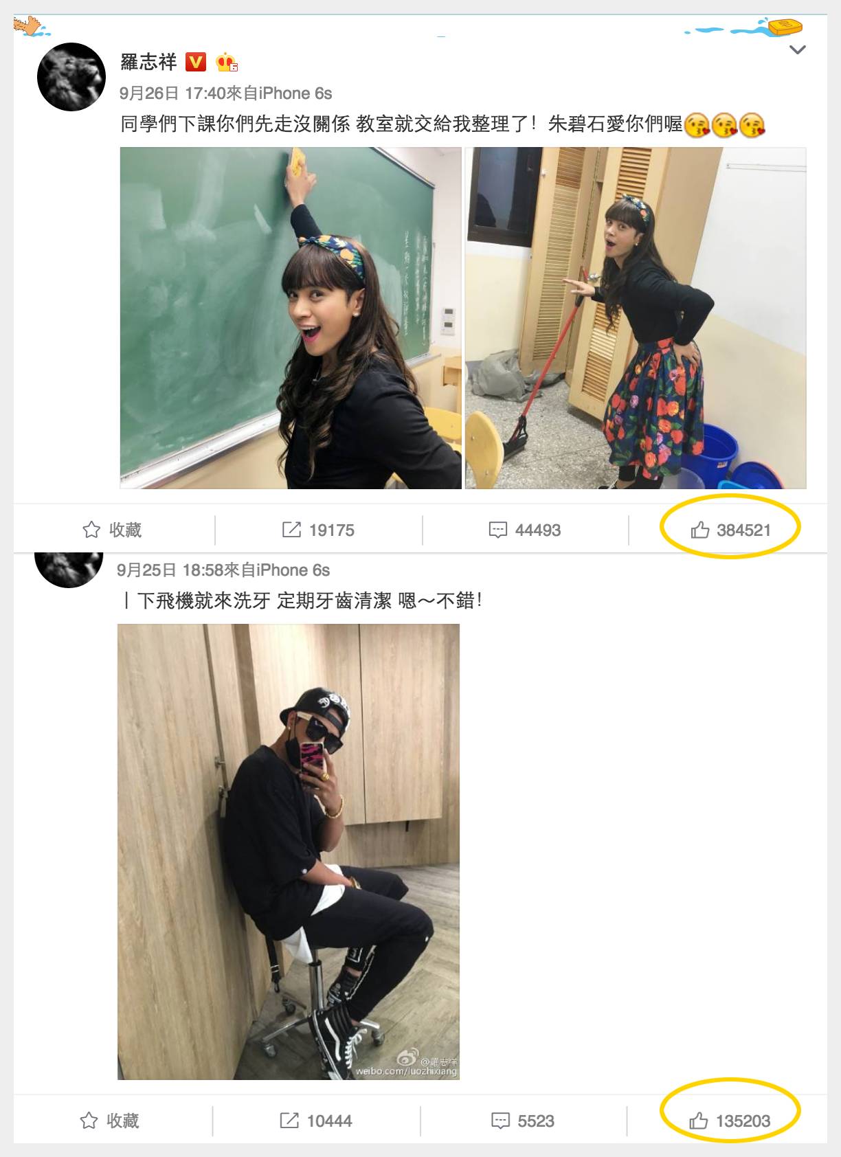 更夸张的是,朱碧石得到的点赞数远超罗志祥的耍帅照……