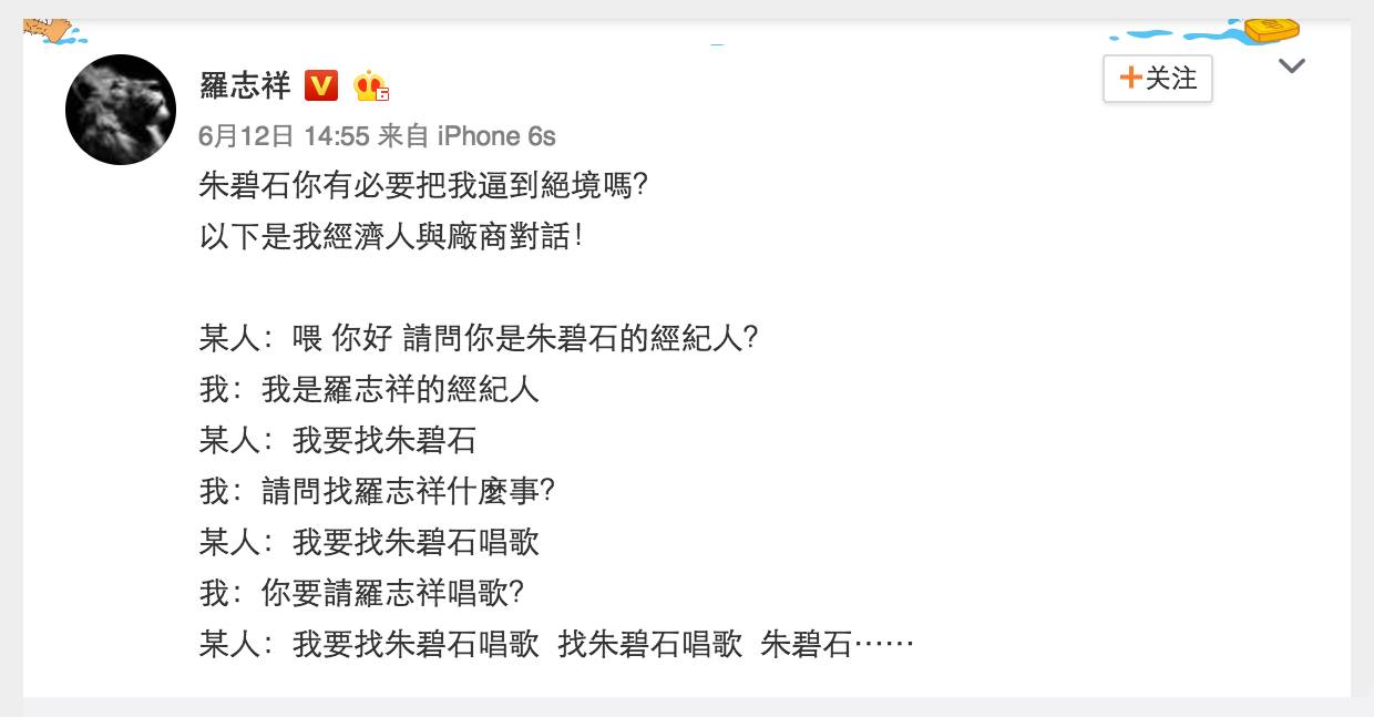 她的大名上过热搜,还有消息说有金主点名要朱碧石接活儿。这一切来得猝不及防,连罗志祥本人都不得不发微博求解释。