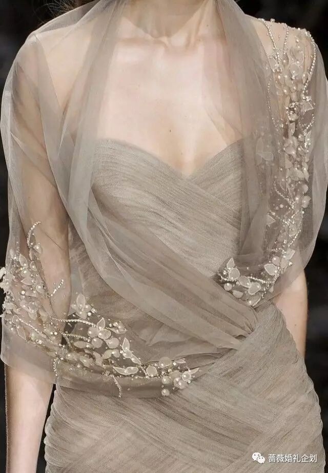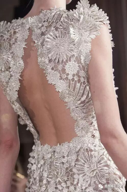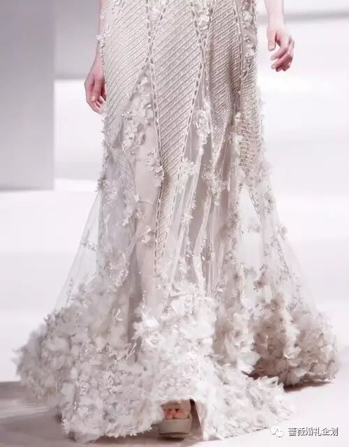 Elie Saab非常强调细节的重要性,随便放大照片的一个地方,都很经得起推敲。银丝流苏、精美刺绣和独特蕾丝是Elie Saab的设计亮点。