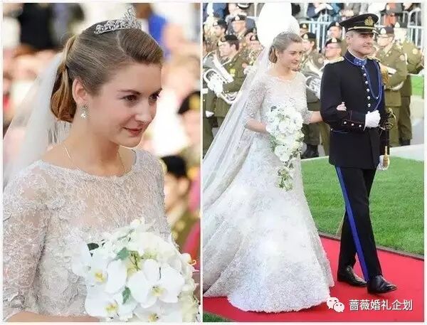 ●卢森堡王妃Stephanie de Lannoy嫁入王室时,一袭Elie Saab端庄典雅大气