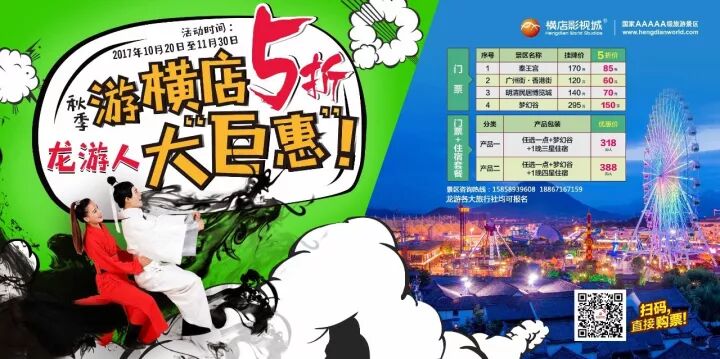 (1)横店四大热门景区的5折特惠:秦王宫、广州街香港街、梦幻谷、明清民居博览城