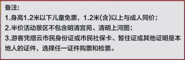 1.身高1.2米以下儿童免票,1.2米(含)以上与成人同价;