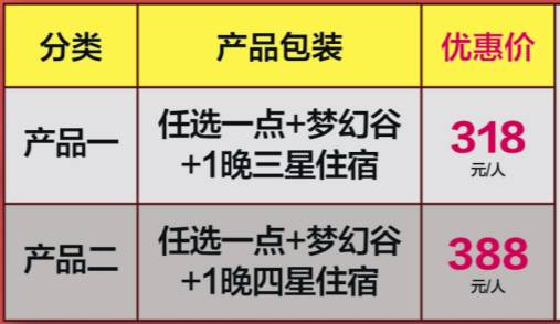 (2)专属特惠二日游套餐预订:一景区+梦幻谷+住宿