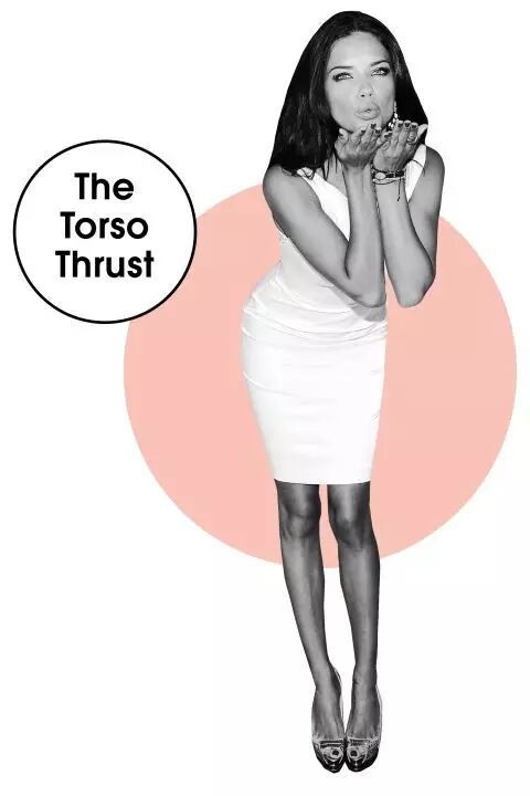 如何摆:将骨盆一边往前推、脚前后站、上半身重心再往后靠,十足时尚天后架式!
