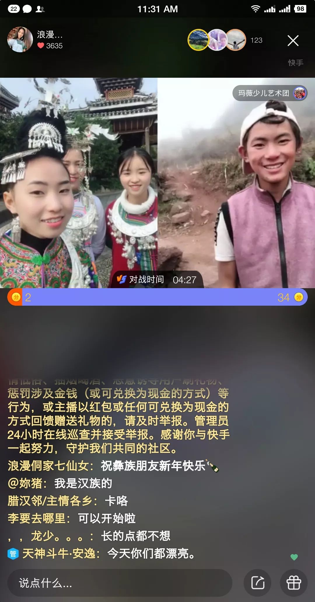 彼时,日者正在跟“七仙女”在快手上直播连线,日者还用彝族歌曲跟“七仙女”的侗家歌曲battle,妮丹那美妙的歌声,以及酷似刘诗诗的肉嘟嘟小脸,让我久久无法回过神来。