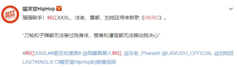 前段时间,红姐撮合雾都、法老和刘炫廷三位说唱界大咖,一起创作了歌曲《Hero》。如果没有红姐的面子,想必个性张扬的Rapper们也不是那么容易给对方面子的。