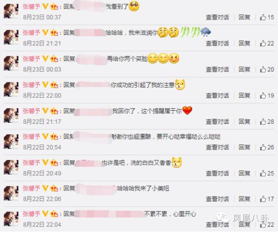 张馨予也尽量一一都回啦,真的差不多是雨露均沾了~