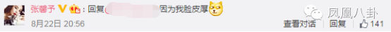 结果张馨予用doge脸四两拨千斤地回复:“脸皮厚”!