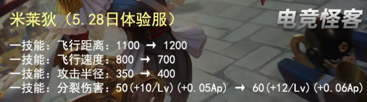 米莱狄在之前的体验服调整中就有过调整,这一次是把一技能的攻击半径再做一个小幅回调处理,但总体还是加强的。
