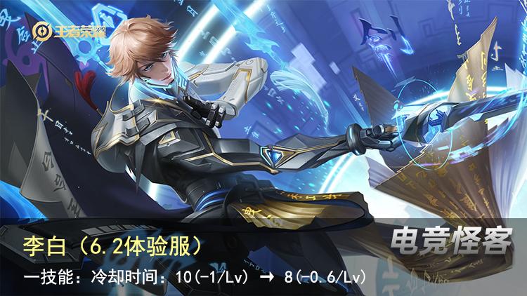 李白经历了上次“蚊子腿”式的加强之后,并没有改变其在当前版本弱势的情况。因此策划此次再次对一技能做出加强调整,将一技能CD基础冷却时间缩短2秒,让李白前中期的一技能CD更短。