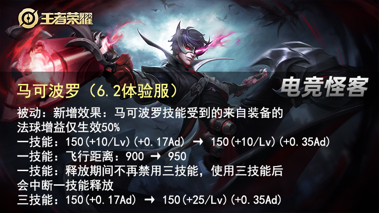 作为补偿,马可一技能的飞行距离增加了50点,并且一技能的AD伤害加成增加,大招的伤害也有所提升。并且一技能新增效果释放期间不再禁用三技能,使用三技能会中断一技能释放,残局收割能力有所提升。