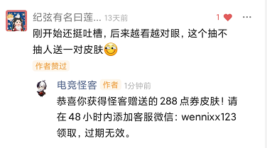 再给大家说一下,怪客每天会在【微信视频号】新发布的视频留言中,抽取粉丝送皮肤!每条都会抽1个,获奖留言会公布在视频号评论区以及公众号文章中!大家记得经常看怪客的视频哦!~