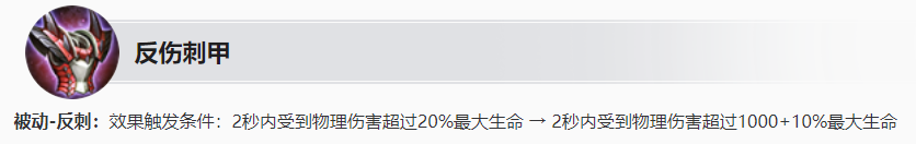 不过对于生命值在1w以上的英雄来说,此次调整算是加强。因为“损失更少的生命值”即可触发被动。所以对于一些战士英雄或刺客英雄,做反甲的收益会有所降低。