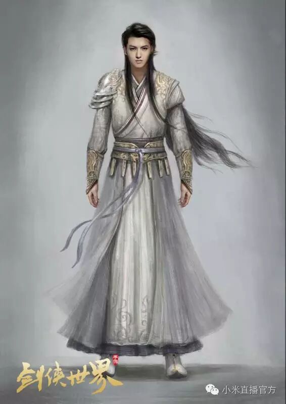 吴亦凡身着武侠服饰,通体一身银白色的深衣,衣裳相连,被体深邃,配上一条同样雪白的绅带束腰,款式外观古朴华丽。银装穿在剑眉星目的吴亦凡身上,可以为文可以为武,俨然一位玉树临风的翩翩贵公子。