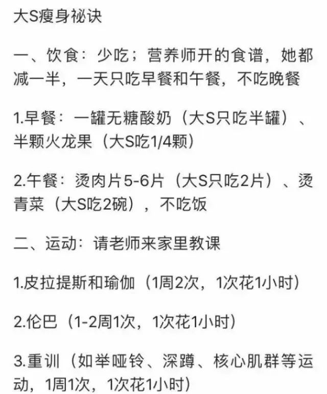 大S自从诞下宝宝之后,就一直处于【幸福肥】的状态,直到之前被网友说与婆婆张兰撞脸,才下定减肥决心。减肥成功后,她也公开了自己的瘦身秘诀↓
