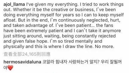还在这条内容下评论道:“我...现在除了我的粉丝没别的 ,看到这些字的话请代替我说一下吧, 我们公司不听我说话 。”Henry在网络上直接呈现和公司之间的矛盾,让粉丝十分担心Henry。