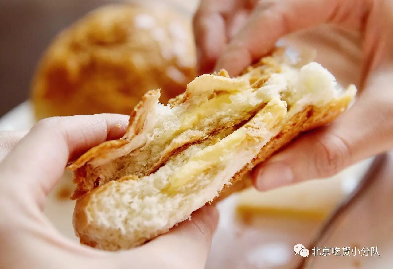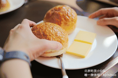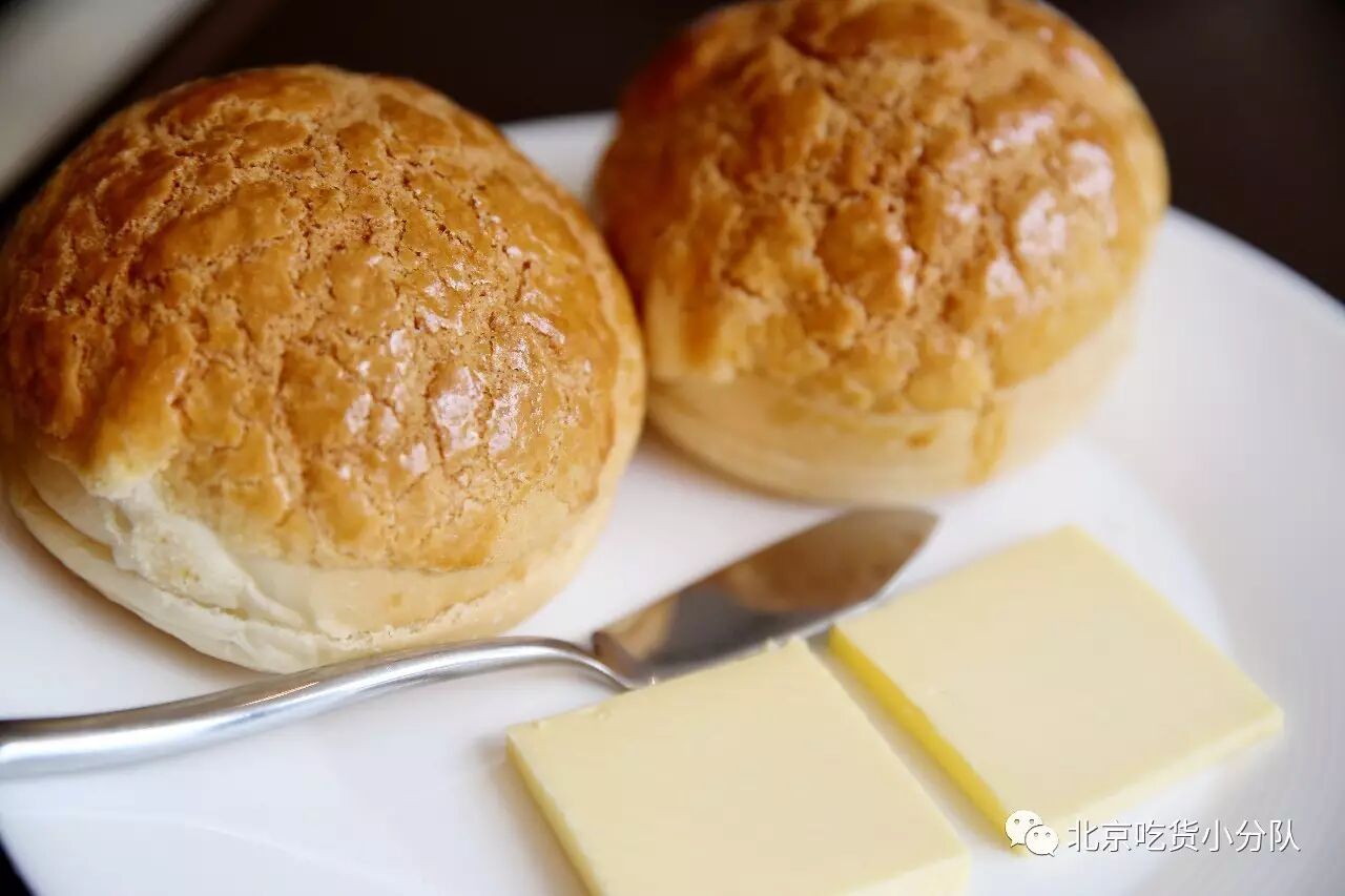 吃的时候一定要把冰冰的黄油片塞进热乎乎的菠萝包后,用手压扁,然后一口咬下去,体会那种冰火两重天的赶脚!