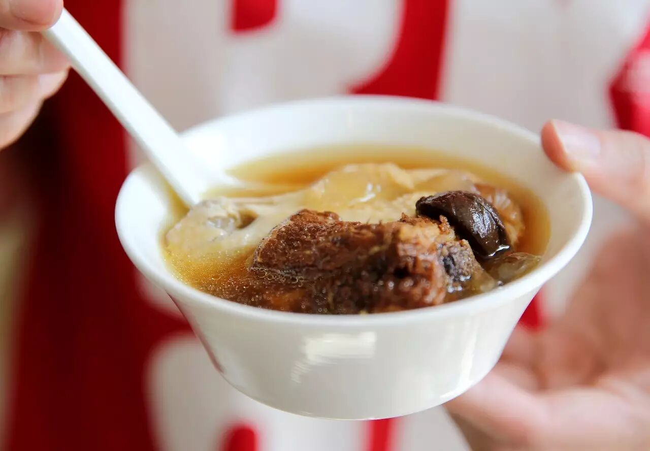 内容丰富,除了有鸡肉以外,还有煎排骨、瘦肉、黑蒜、桃胶等,喝了妥妥是滋补养颜。