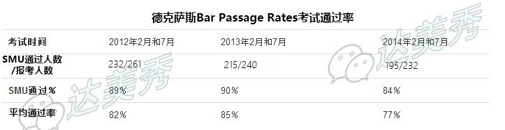 Dedman法学院的毕业生的州律师考试通过率一直远高于全美平均水平。