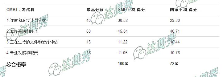 SMU的音乐Music Therapy专业在Meadows艺术学院采取由Music Therapists认证委员会(CMBT)提供的委员会认证考试。SMU毕业生在考试的所有四个部分的成绩都高于全美平均水平。