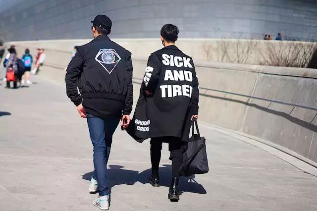 在看似平庸的服饰上面,巧妙地将不同元素,如:文字、符号、LOGO、反差色调的布块进行大范围的拼贴,在错中复杂的视觉中,让人有一种不羁却又不乏个性的感觉,其风格也是迅速风靡全球的穿搭配置。