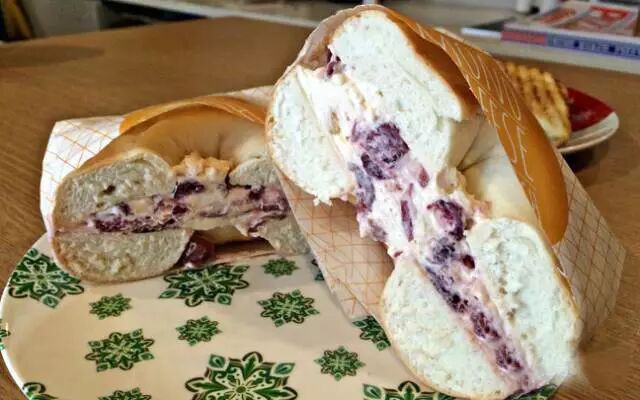 蔓越莓芒果酸酸甜甜,抹茶红豆清香爽口,新鲜加热的贝果涂抹厚厚的一层芝士酱,看着就有大咬一口的冲动~