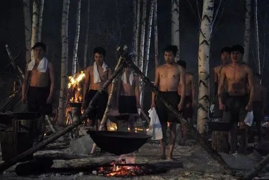 零下三十八度的夜,他和其他几位演员强忍着寒意,光着膀子,一路嘶吼着跑进了白桦林,颤颤巍巍地洗了一次热水澡。
