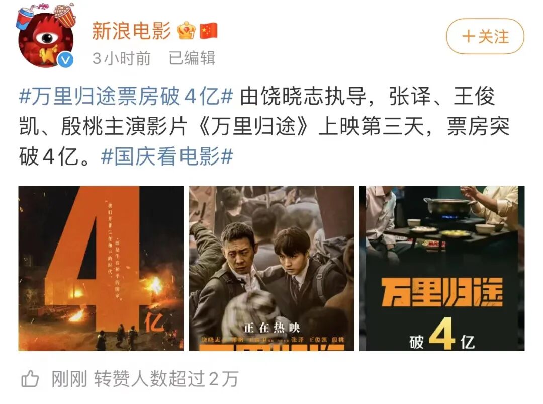 最新的电影《万里归途》上映三天票房就破4亿,豆瓣评分7.6,这都是观众的认可。